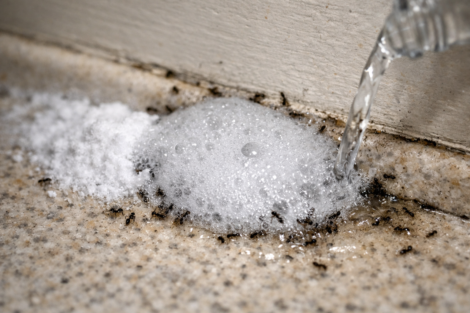 Kada se lužina i kiselina sretnu, dolazi do burne kemijske reakcije, oslobađajući ugljikov dioksid. Za insekte ova šištava smjesa postaje nepremostiva prepreka. Soda bikarbona uništava vanjsku ljusku štetočina, i stolni ocat pokvari njihove postavke navigacije.