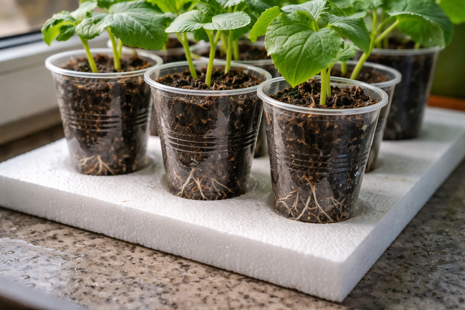 Glavna tajna nijansa: uvijek provjeravajte temperaturu tla u loncu, a ne zraka u prostoriji, postavljanjem obične pjenaste plastike ispod posuda za sadnju za pouzdanu izolaciju od hladnog kamena.