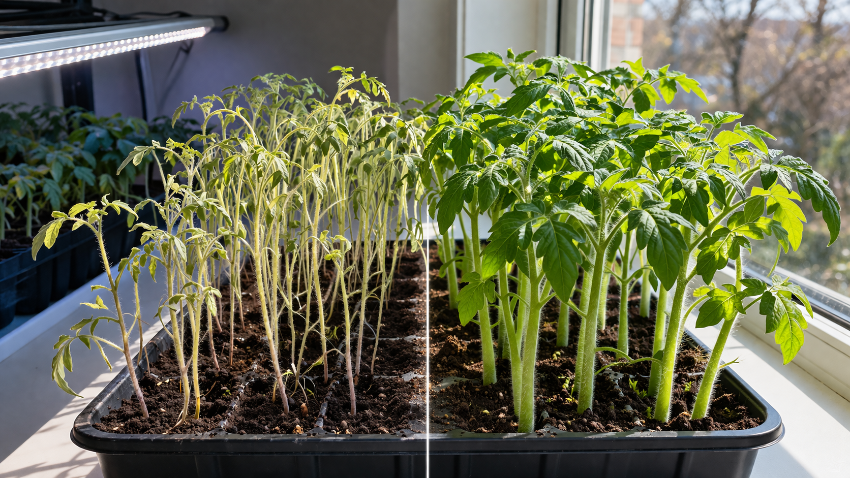 Svakog proljeća vrtlari se suočavaju s istom nesrećom – tanke, izdužene i blijedozelene sadnice rajčice tužno se naginju prema prozorskoj dasci zbog nedostatka sunčeve svjetlosti. Ako vaše sadnice izgledaju krhko i beživotno u stražnjem dijelu sobe, nemojte žuriti započeti ispočetka jer ću vam reći kako jednostavnim promjenama njege vratiti debele stabljike i bogatu boju.