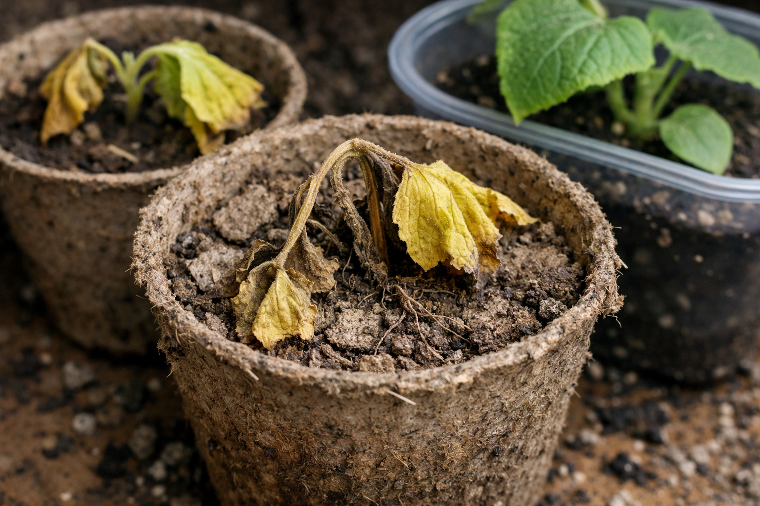 Krastavci su kultura s vrlo brzim metabolizmom. Svako kašnjenje u dobivanju vlage dovodi do nepovratnih promjena u tkivima stabljike. Prava ravnoteža između poroznog treseta i stalne vlage osigurava jake sadnice kada se sade u zemlju.