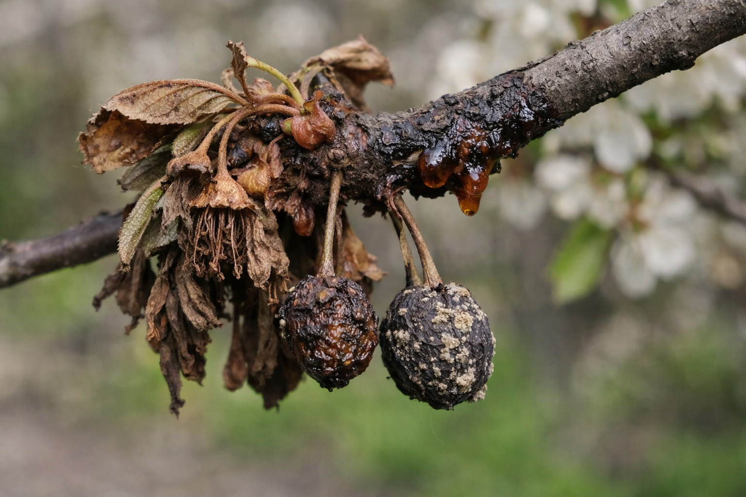U proljeće se vrt budi, i to je u ovom trenutku gljivična infekcija štrajkovi. Mnogi ljudi brkaju ovaj problem s posljedicama ponovljenih mrazova, gubeći dragocjeno vrijeme za liječenje. Uzročnik prezimi u zahvaćenim granama i mumificiranim plodovima, a dolaskom toplijeg vremena počinje se aktivno razmnožavati.