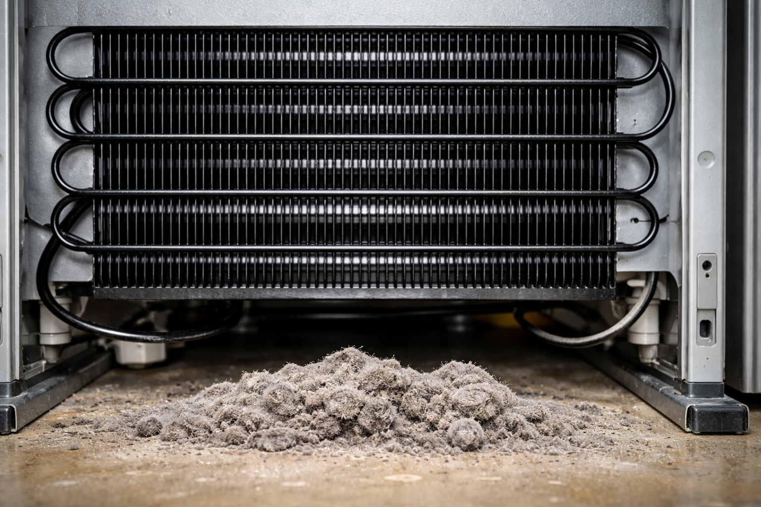 Učinkovit rad bilo koje rashladne opreme izravno ovisi o procesu tzv izmjena topline. Na stražnjoj ili donjoj strani uređaja nalazi se posebna metalna cijev, savijena poput zmije – ovo kondenzator. Kroz njega se toplina uklanja iz unutarnje komore prema van. Kada se dlake i dlake kućnih ljubimaca nakupe na rebrima ovog dijela, formira se neka vrsta “krznenog kaputa” koji blokira prijenos topline.