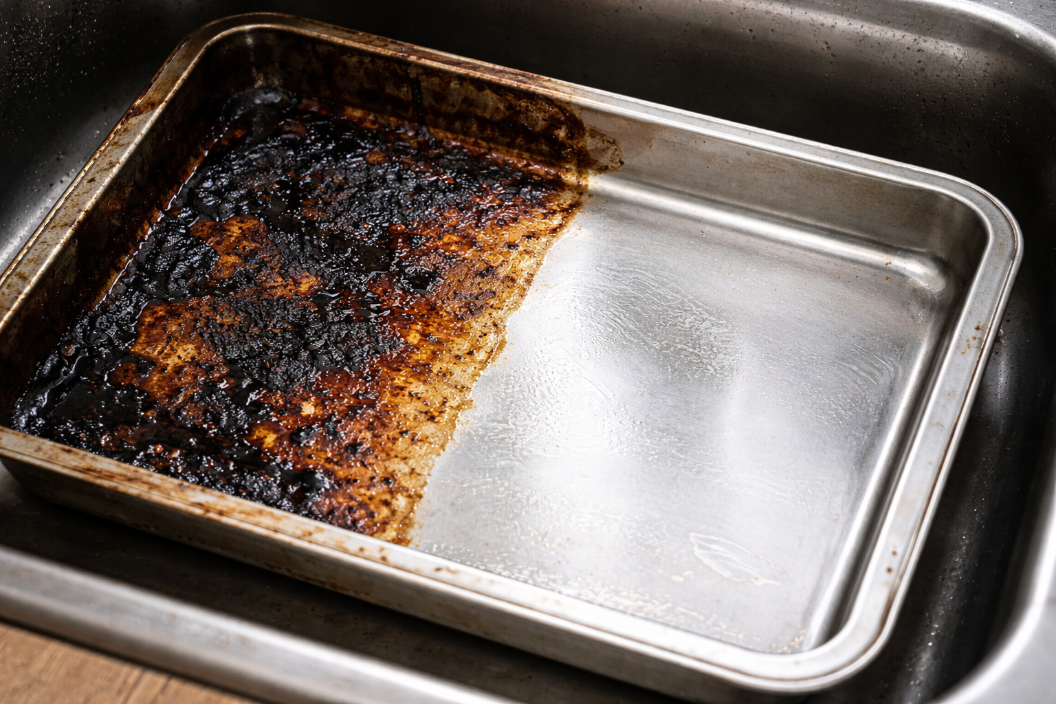 Osušena masnoća i crna korica na limovima za pečenje plaše mnoge ljude, ali njihovo ribanje čeličnom vunom je pogreška koja uništava neprianjajući sloj. Postoji jednostavan kemijski trik s osnovnim kućnim lijekovima koji će razbiti čak i najtvrdokornije naslage ugljika pred vašim očima.