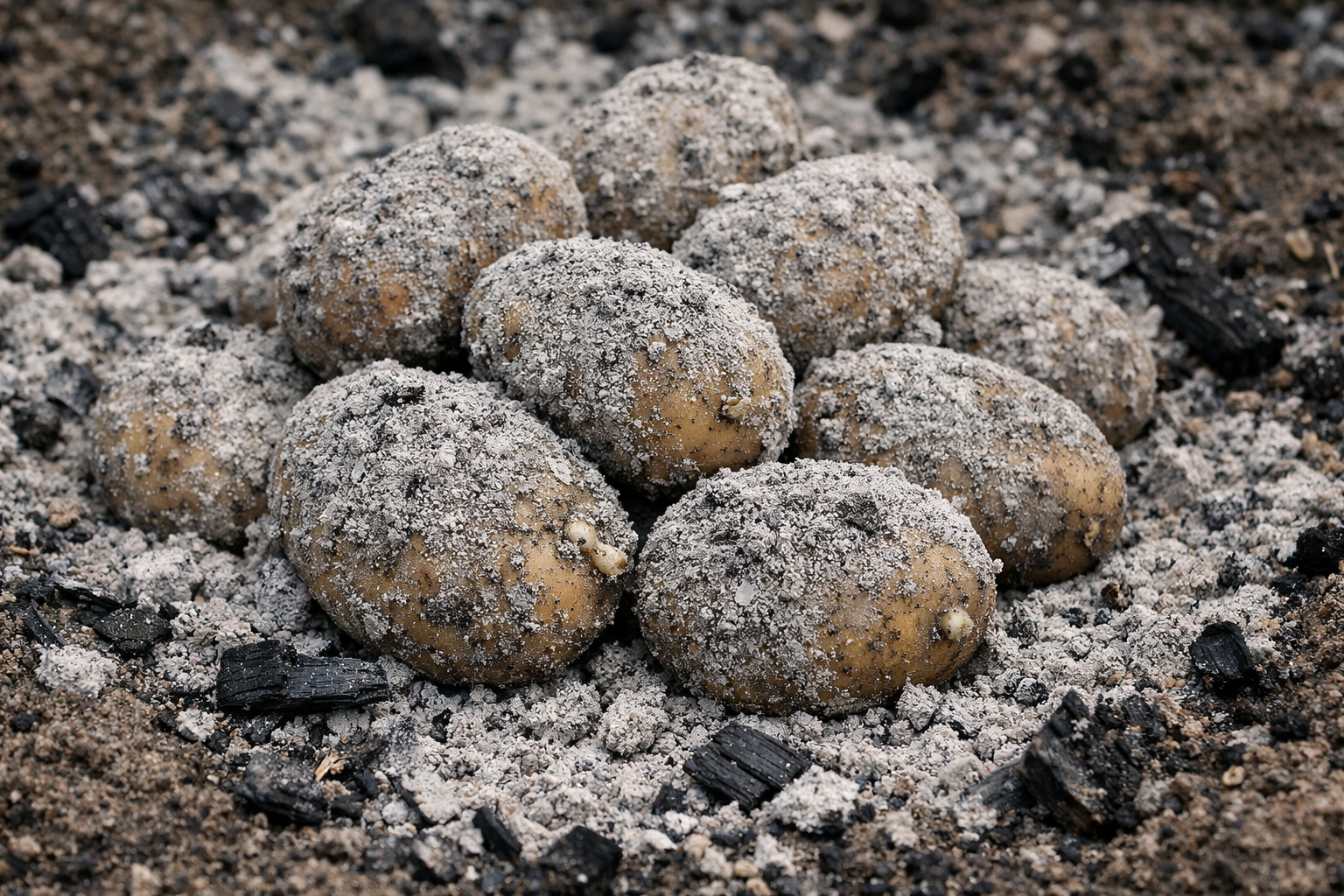Drveni pepeo sadrži kalij, kalcij I fosfor u lako probavljivom obliku. Kada gomolj omotamo ovim sastavom, oko njega se trenutno stvara zaštitna i hranjiva kapsula.