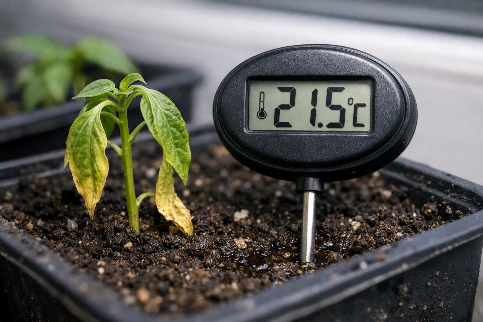 Glavna tajna spašavanja paprike je provjera temperature tla, a ne samo zraka. Ako je soba topla, ali sama posuda je na ledeno hladnoj plastici, korijenje prestaje upijati vodu i biljka se suši od žeđi, čak iu mokrom tlu.