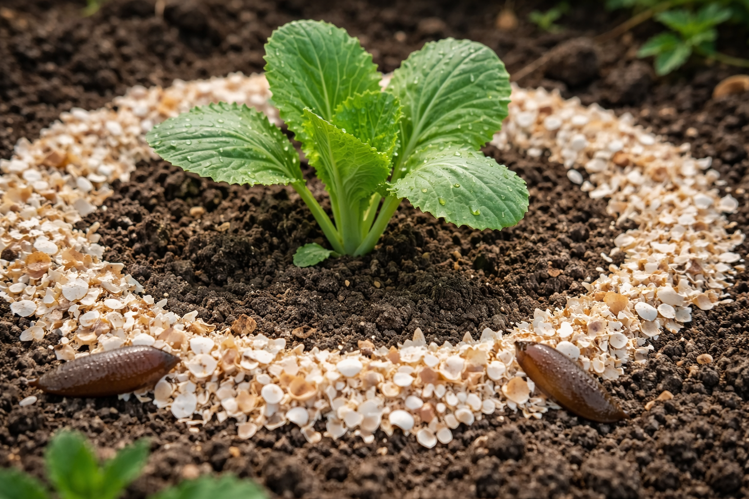 Stvaranje fizičke barijere – Ovo je najpouzdaniji način za zaustavljanje štetnika. Tijelo puža je vrlo osjetljivo, pa mu svaka oštra ili higroskopna površina postaje nepremostiva prepreka.