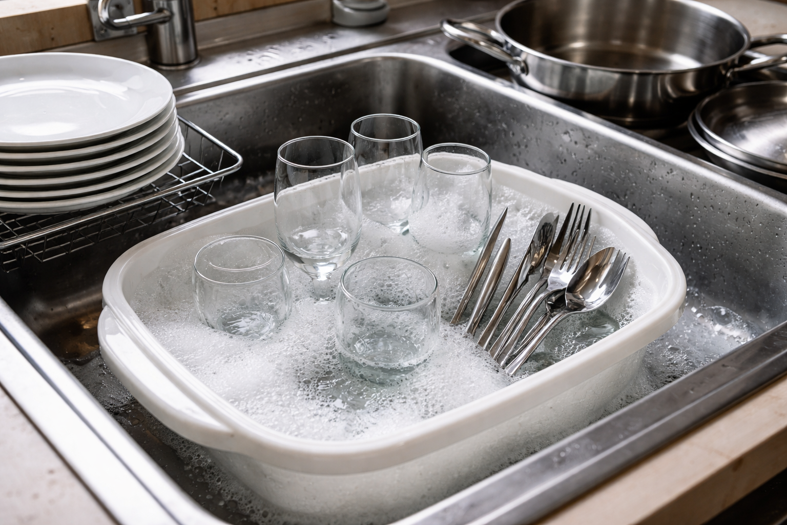 Ovaj slijed vam omogućuje spremanje spužvica za pranje što je moguće čistije tijekom cijelog procesa, a lomljivo staklo nije prekriveno skliskim, masnim filmom.