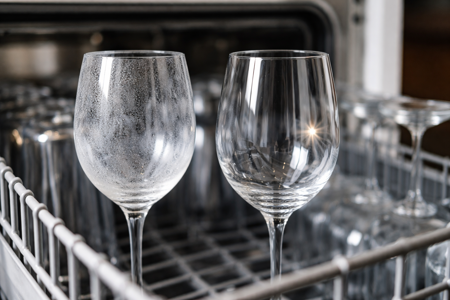 Izvadite posuđe iz perilice ili sušilice, a ono je opet prekriveno mutnim kapljicama i tragovima vode. Ovaj problem je neugodan jer se čini da je posuđe nakon pranja još uvijek prljavo i treba ga oprati. Podijelit ću radni life hack koji sam testirao u vlastitoj praksi, a koji će odmah učiniti da vaše staklo i keramika zablistaju čistima bez puno trljanja ručnikom.