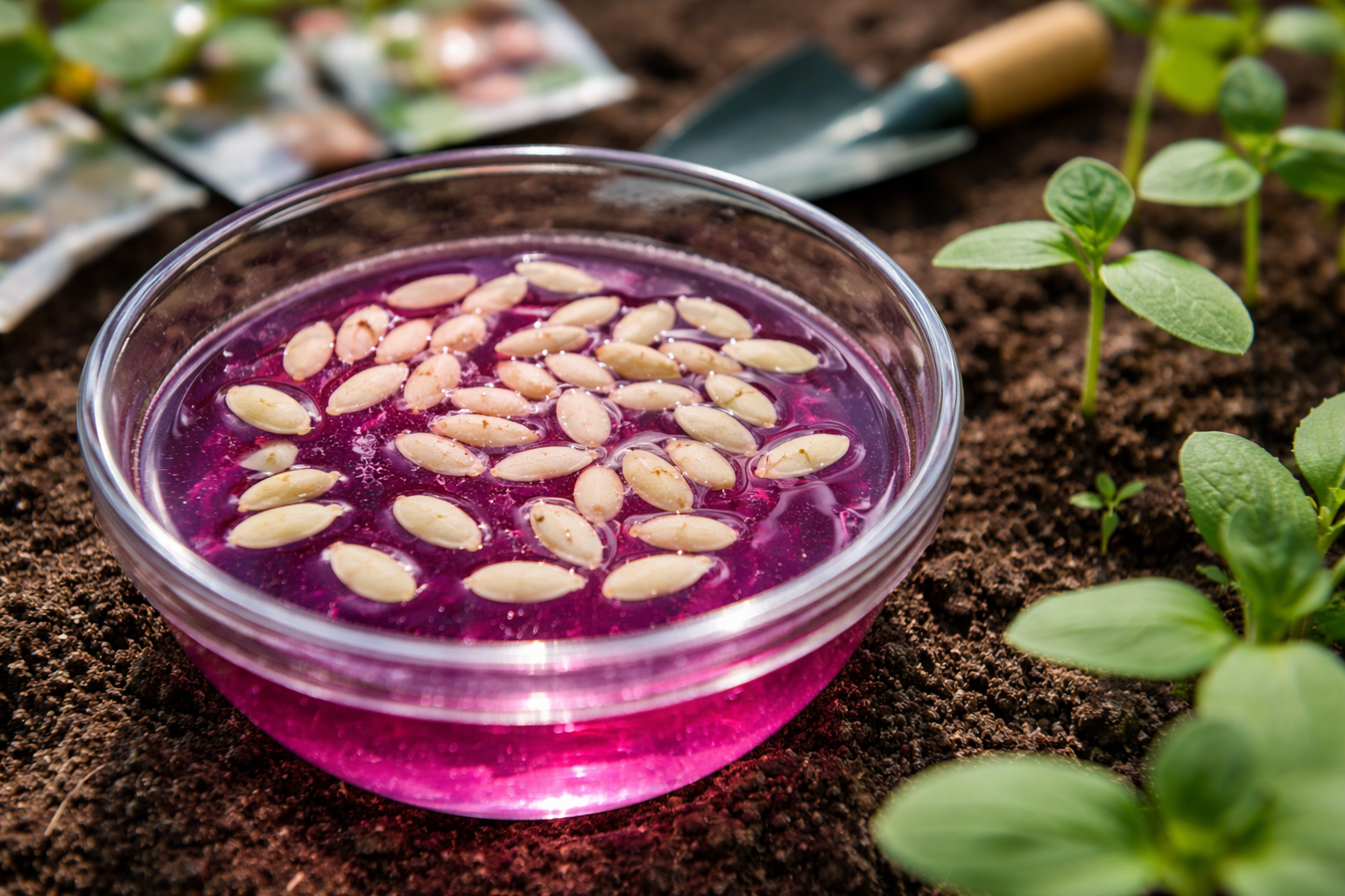 Kalijev permanganat djeluje kao snažan oksidans i antiseptik. Doslovno spaljuje ljuske patogenih bakterija izravno na površini sjemena prije nego ono uđe u zemlju.